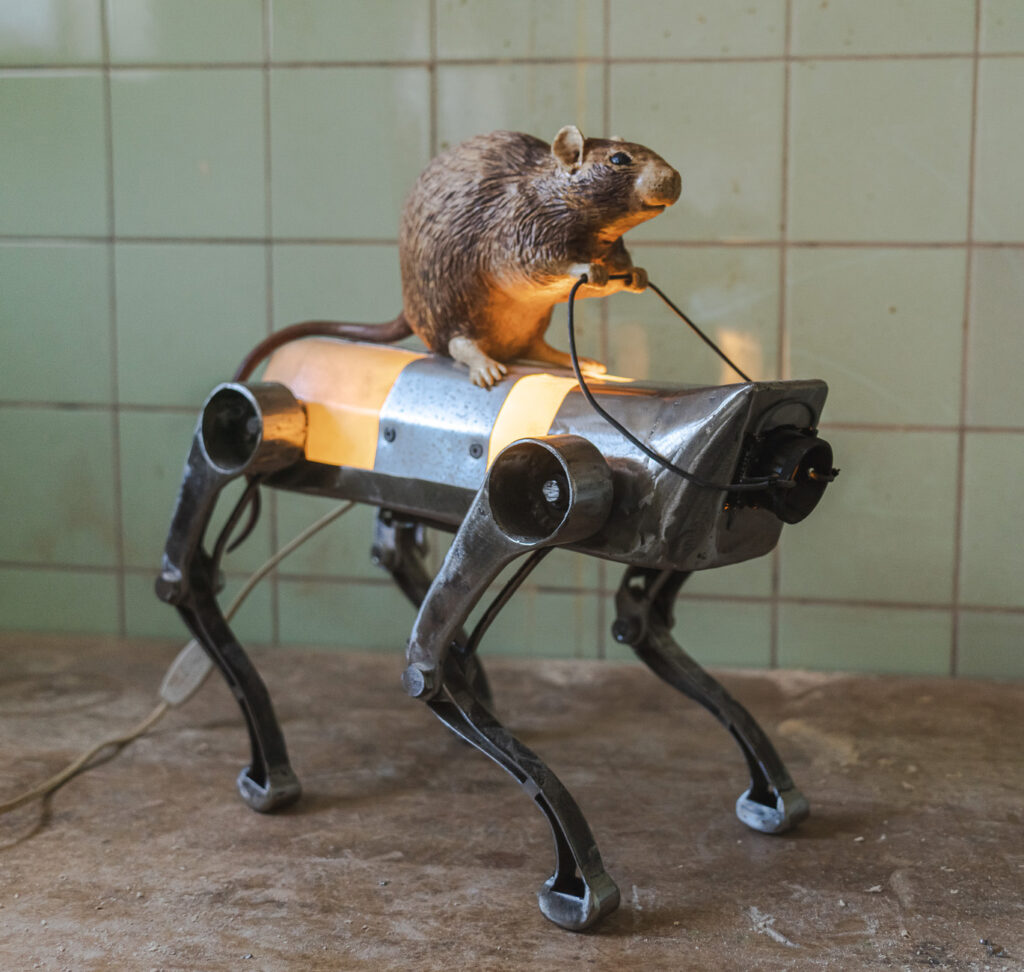 This one’s a hacker and has taken control of a robot dog in the style of the Boston Dynamics robots.